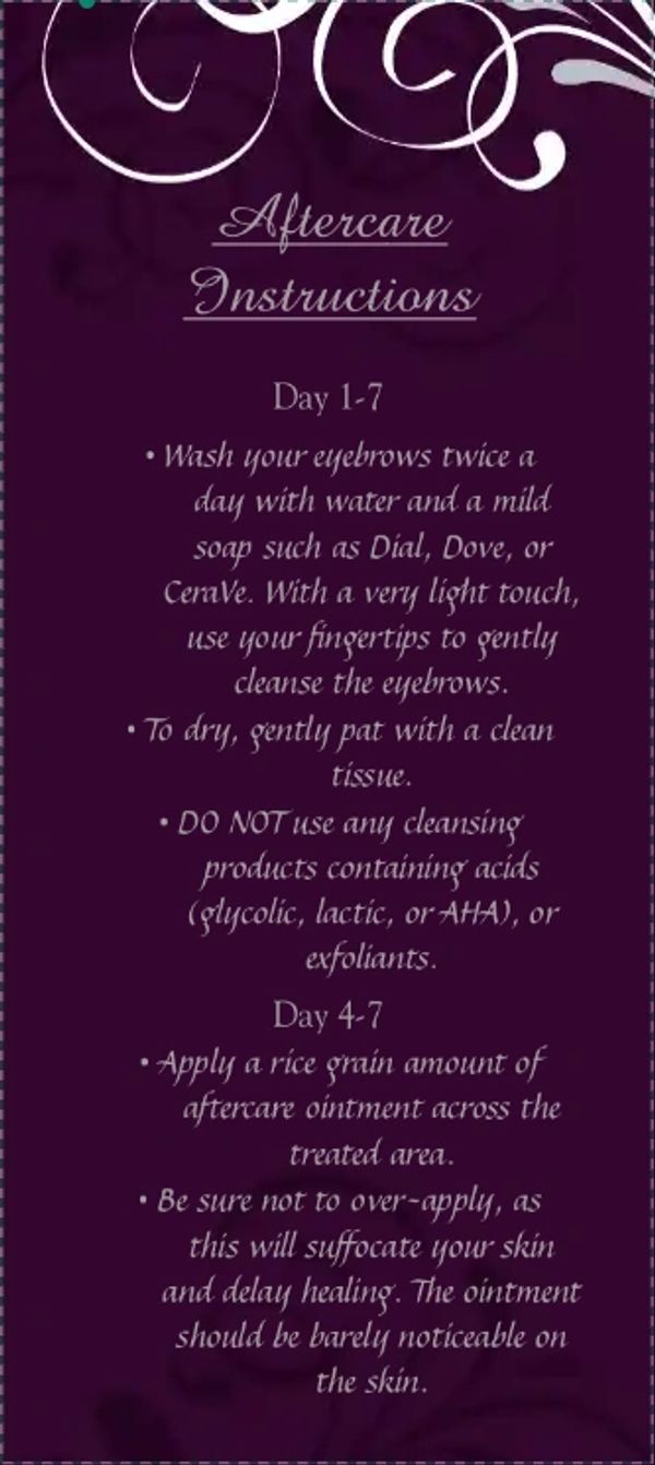 Do not book an appointment before a vacation or anytime you will be getting wet, sweating excessively, or in the sun. You cannot swim for 2 weeks after. You can not wear makeup for 7 days post procedure so please consider the timing of upcoming events when choosing a date. Specifically eyeshadow, foundation and powder (anything that can get into the brows) can cause an infection.